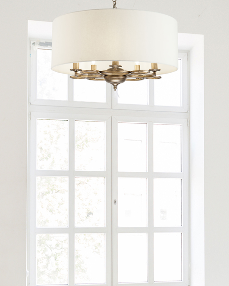 Арматура из металла. Цилиндрический абажур из ПВХ покрыт кремовой тканью.