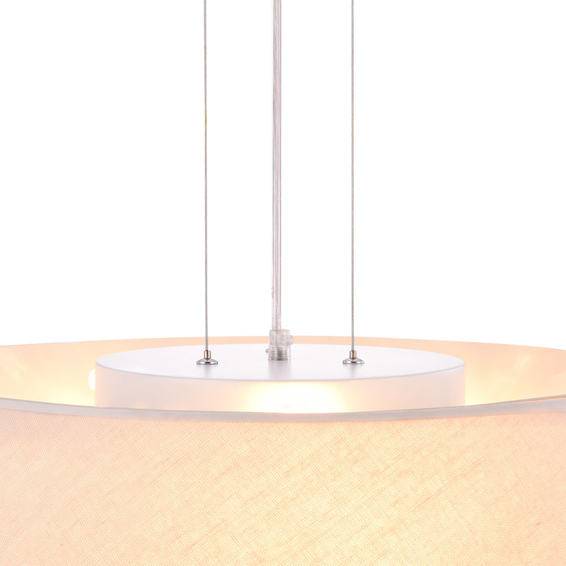 Арматура из металла. Абажур из ПВХ покрыт тканью бежевого цвета.
