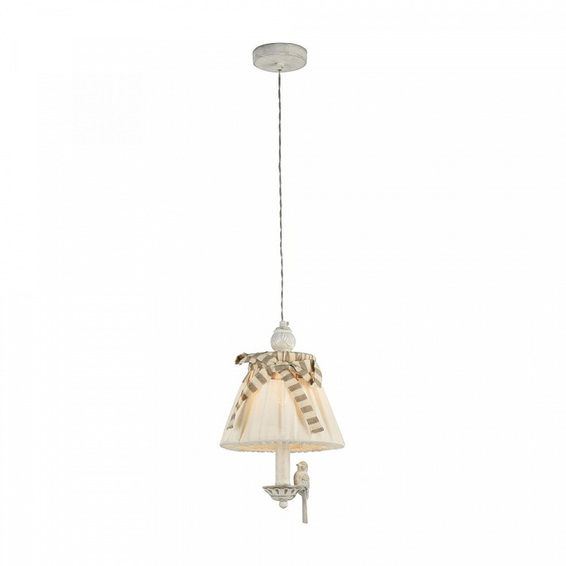 Арматура из металла. Декоративные элементы в виде птичек из полирезина. Абажур изо льна на резинке (съемный).