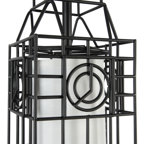 Каркас из металлических прутьев в виде мировых произведений архитектуры. Плафон из белого хлопка.