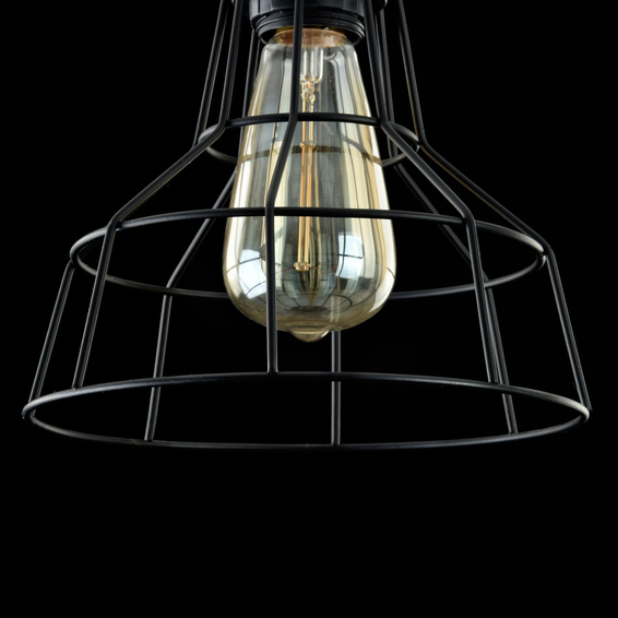 Каркас из металла покрыт черным цветом. Декоративный плафон из металлической сетки.
