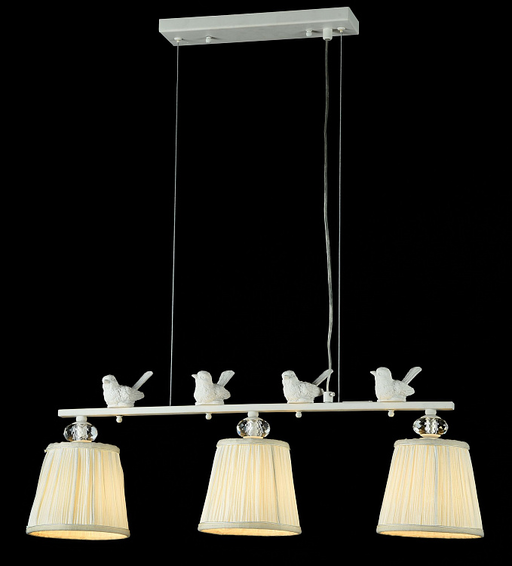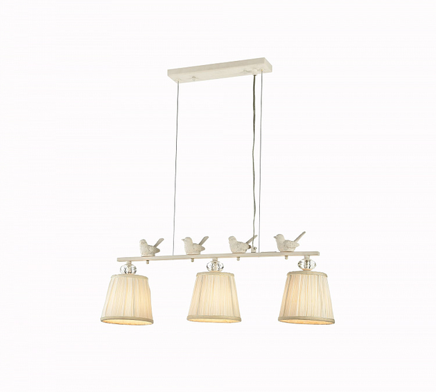 Арматура из металла. Декоративные элементы в виде птичек из полирезина. Абажур из органзы с тесьмой.