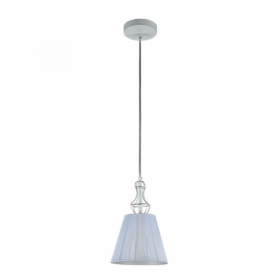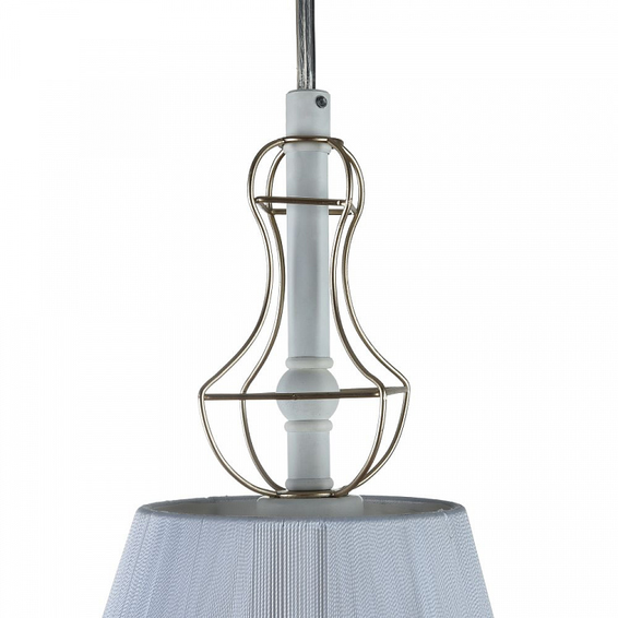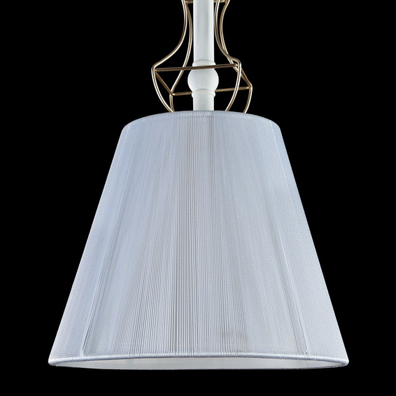 Арматура из металла. Декоративный каркас из золотой проволоки. Абажур из ПВХ покрыт тканью (нейлон) белого цвета.
