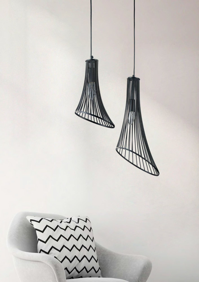 Арматура из металла. Абажур сложной геометрической формы из металлических прутьев.