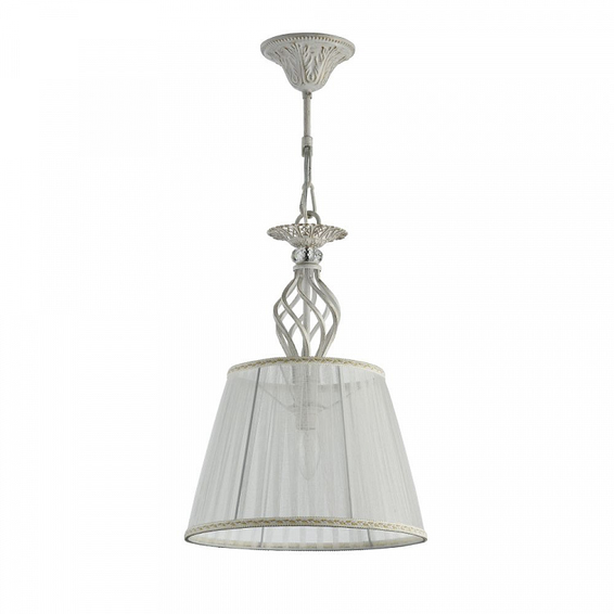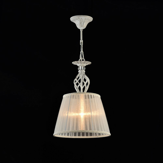 Арматура из металла. Абажур из плиссированной белой органзы. Подвески из *хрусталя.