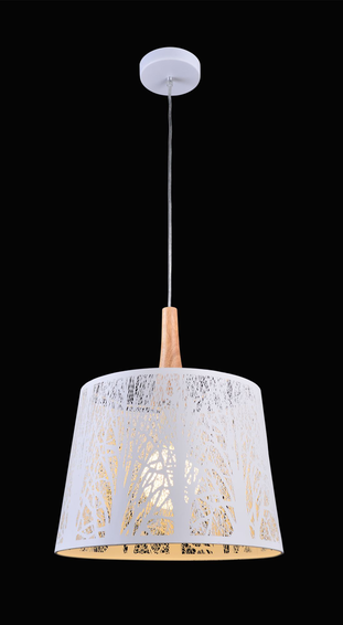 Круглый каркас из металла дополнен деревянным элементом. Использование трафаретного узора.