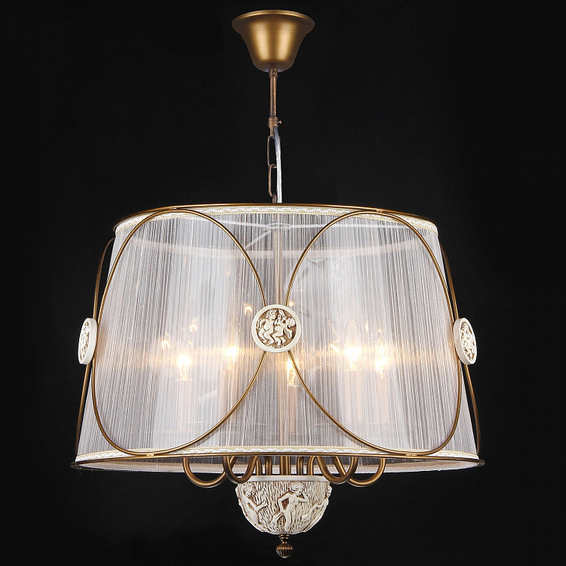 Арматура из металла. Декоративный элемент из керамики. Абажуры из плиссированной прозрачной органзы.