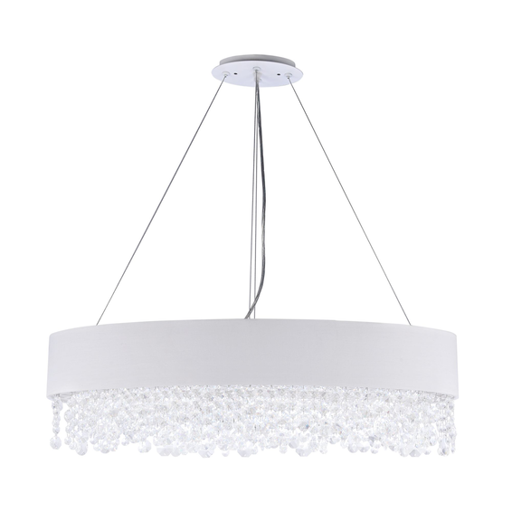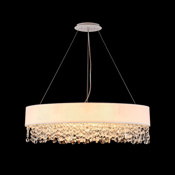 Арматура из металла. Абажур из ПВХ покрыт тканью. Декоративные подвески различной огранки.
