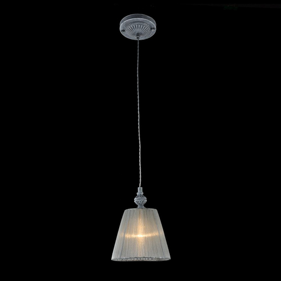 Арматура и декоративные элементы из металла. Абажур из органзы серого цвета.