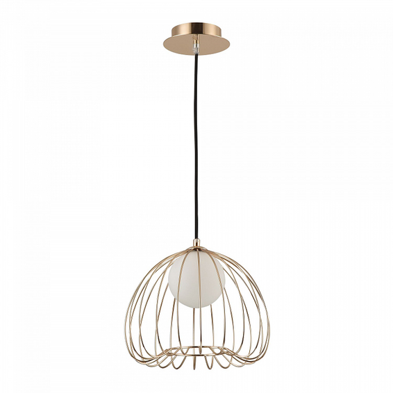 Каркас из металлических прутьев. Декоративный плафон из белого матового стекла. Модель представлена в 2-х цветах. Цвет Белый с Золотом - Артикул MOD542PL-01G