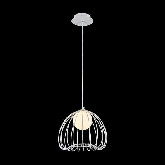 Каркас из металлических прутьев. Декоративный плафон из белого матового стекла.