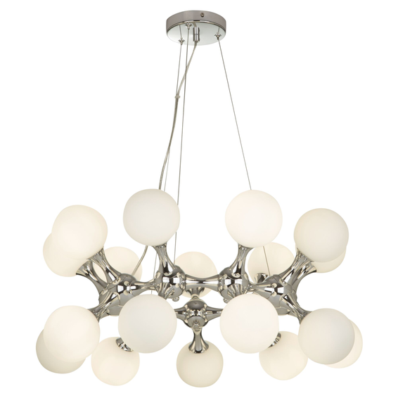 Арматура из металла. Регулируемая высота подвеса. Плафоны в виде шаров из белого матового стекла. Модель представлена в 2-х цветах. Цвет Хром - Артикул MOD021PL-18CH