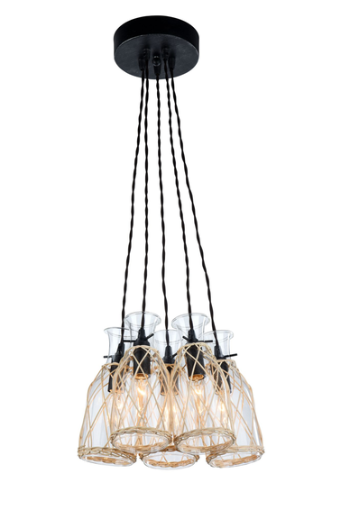 Каркас из металла. Плафон выполнен из стекла и ротанга.