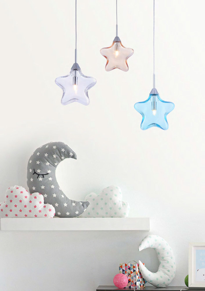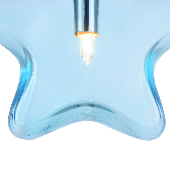 Каркас из металла. Плафоны в виде звезд различных цветов.