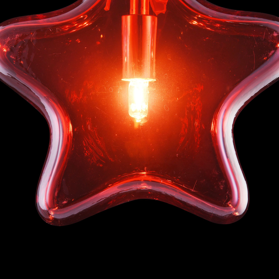 Каркас из металла. Плафон в виде звезды красного цвета. Модель представлена в различных цветах : в зеленом цвете (Артикул MOD242-PL-01-GN), в персиковом цвете (Артикул MOD242-PL-01-AM), в синем (Артикул MOD242-PL-01-BL) .