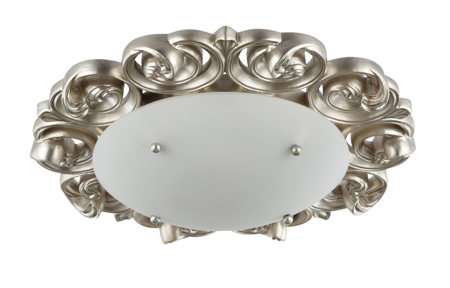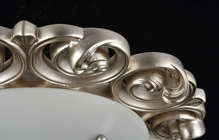 Декоративные элементы из полирезина. Плафон из матового стекла. Абажур из ПВХ покрыт хлопковой тканью.