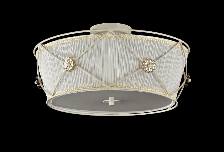 Каркас из металла декорирован стеклянными цветами. Абажур из плиссированной органзы.