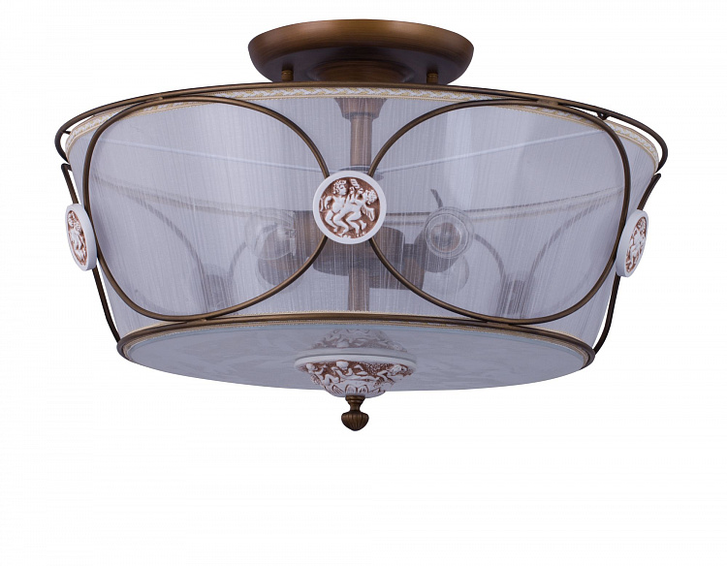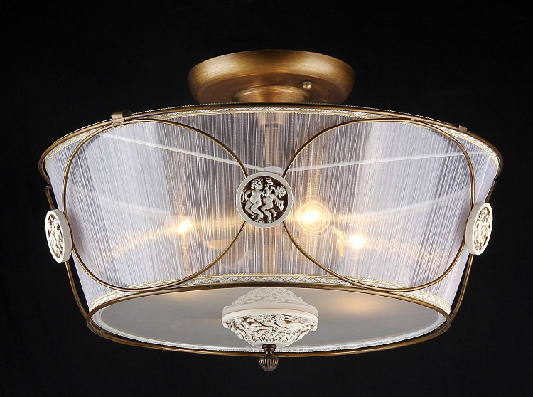 Арматура из металла. Декоративный элемент из керамики. Абажуры из плиссированной прозрачной органзы.
