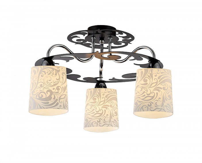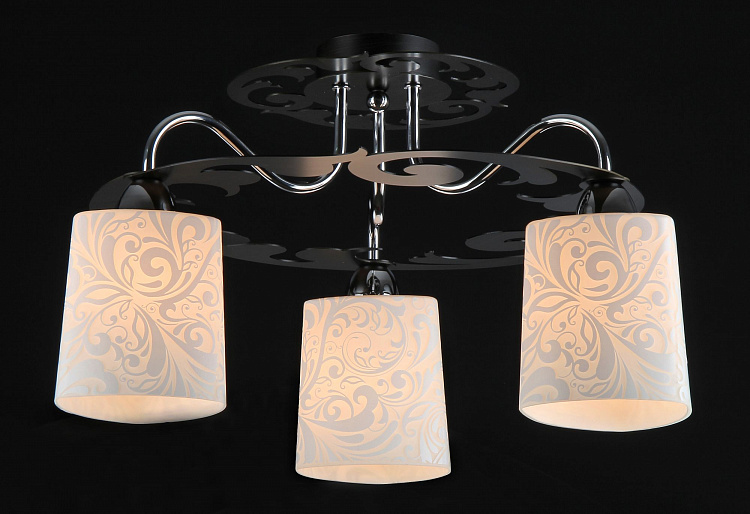 Каркас из металла. Плафоны из матового стекла с трафаретной печатью.