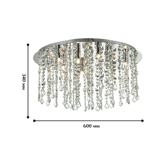 Светильник изготовлен из хромированного металла, хрустальные подвески высшего качества.