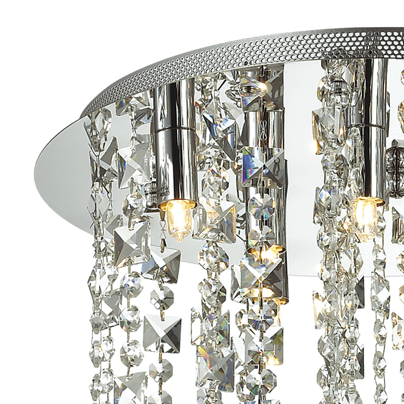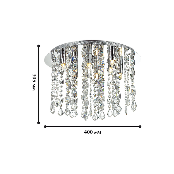 Светильник изготовлен из хромированного металла, хрустальные подвески высшего качества.