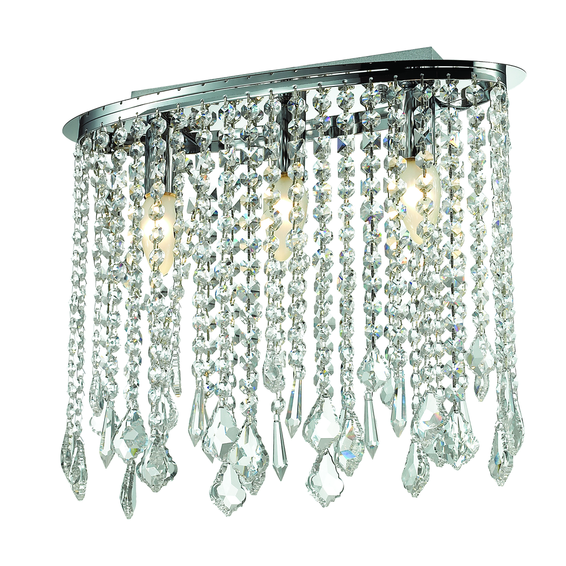 Светильник изготовлен из хромированного металла, хрустальные подвески высшего качества.