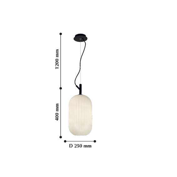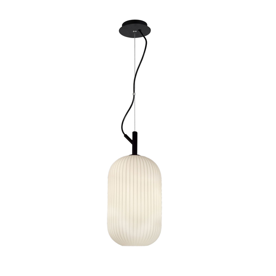 Каркас изготовлен из металла черного цвета, выдувной плафон из белого рифленого стекла.