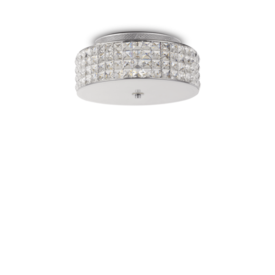 Арматура и детали из хромированного металла. Рассеиватель из квадратных хрустальных элементов с фацетом на боковой части и нижнее стекло пескоструйной обработки.