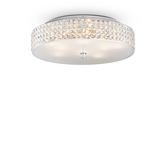 Арматура и детали из хромированного металла. Рассеиватель из квадратных хрустальных элементов с фацетом на боковой части и нижнее стекло пескоструйной обработки.