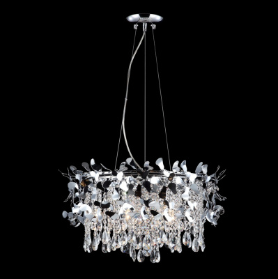 Каркас изготовлен из металла, окрашенного гальваническим способом в хромовый цвет, хрустальные подвески прозрачного цвета.