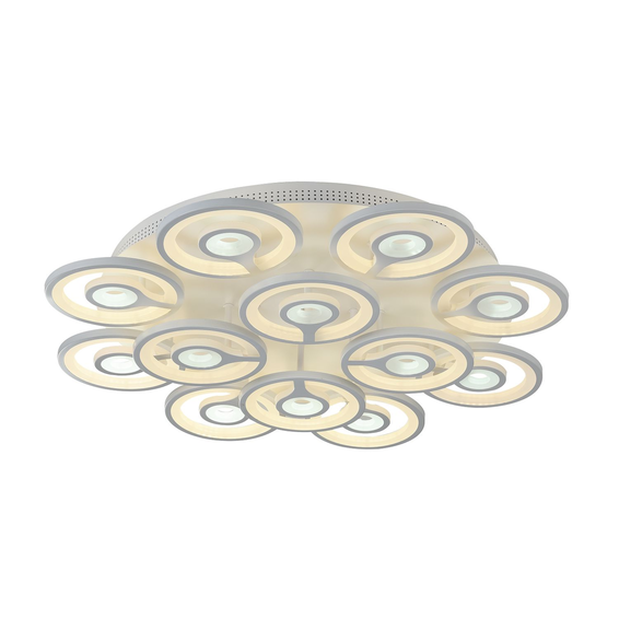 Каркас светильника из металла,окрашен в белый цвет.Плафон из белого акрила.Диммирование,регулировка цвета от теплого к холодному,LED в комплекте,включая пульт управления.