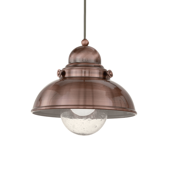 Корпус света в виде купола из металла с разными покрытиями и белой окраски внутри. Рассеиватель из дутого стекла деревенского стиля.