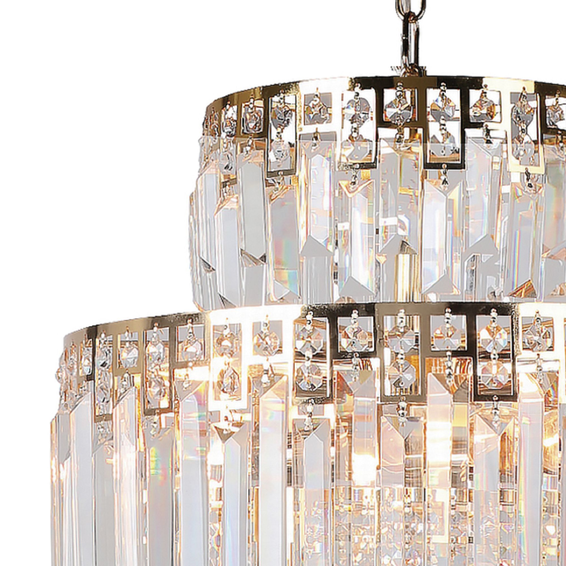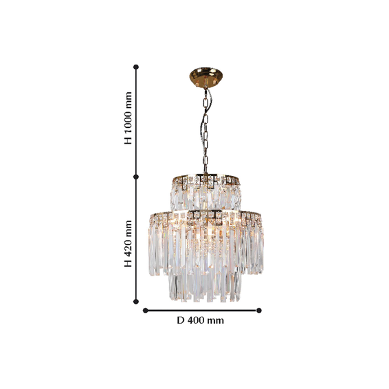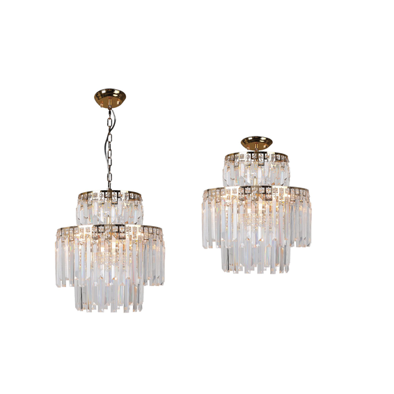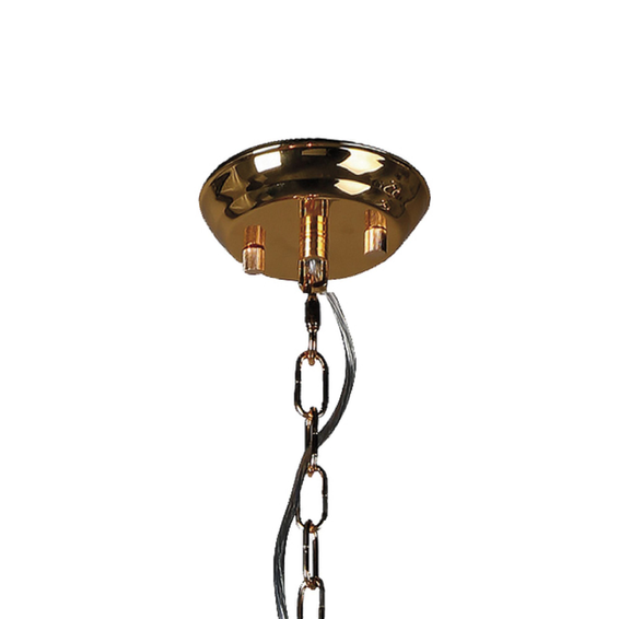 Корпус светильника из металла, покрытый золотой гальваникой,подвески из прозрачного хрусталя высшего качества.