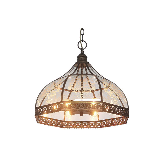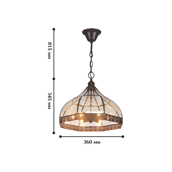 Арматура изготовлена из металл, окрашенного в коричневый цвет, стекло инкрустированное прозрачное, с нанесенным белым узором.