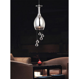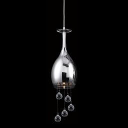 Арматура светильника сделана из металла,хромированного цвета.Плафон из прозрачного стекла,подвески из хрусталя.