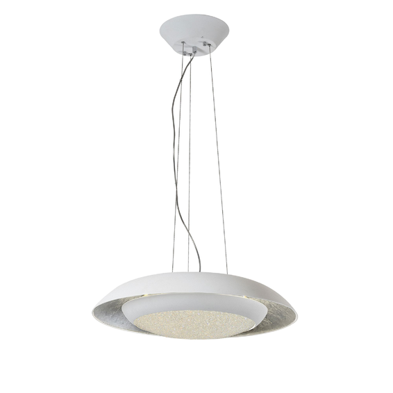 Каркас светильника из металла,окрашен в белый цвет снаружи и покрыт серебряной фольгой внутри. Рассеиватель из белого акрила. Пульт управления световыми сценариями. Доступен в черном цвете код- 2114-1P .