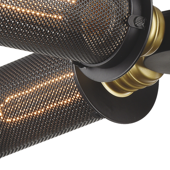 Арматура изготовлена из металла черного цвета, декоративные цоколи бронзового цвета, плафоны в виде сетчатых трубок.