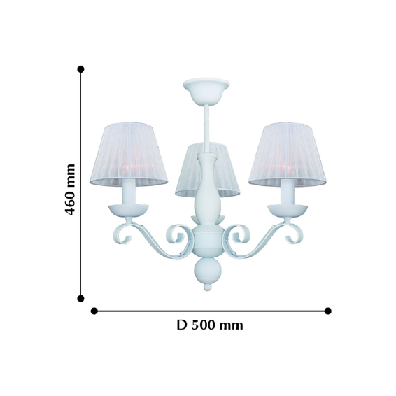 Каркас светильника из металла белого цвета и дополнены абажурами из белой органзы.
