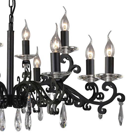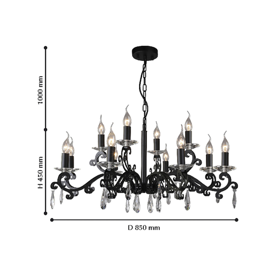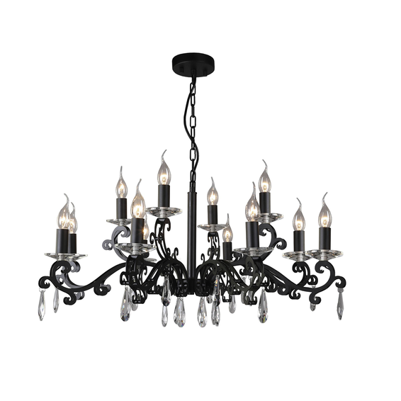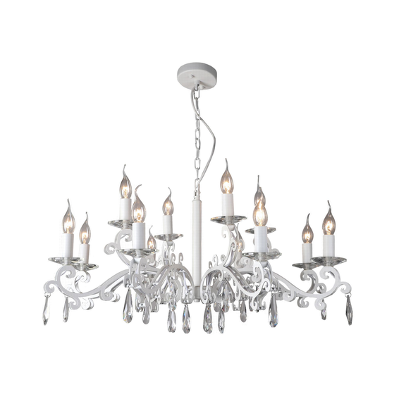 Корпус светильника сделан из металла и окрашен в матовый белый цвет.Подвески из прозрачного хрусталя высшего качества.Доступен в черном цвете код- 1968-12P.