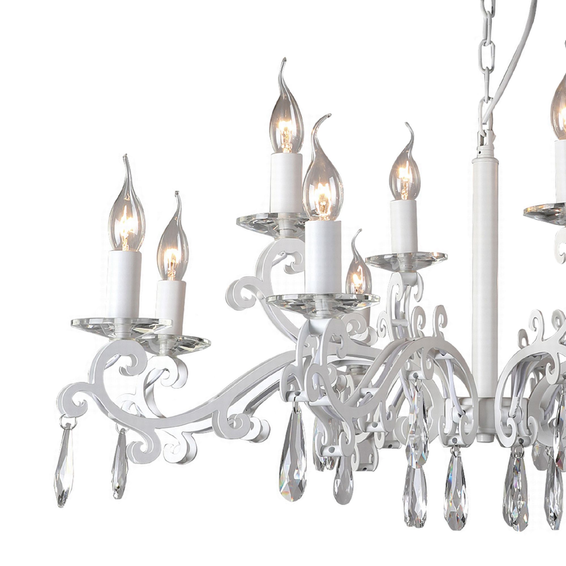 Корпус светильника сделан из металла и окрашен в матовый белый цвет.Подвески из прозрачного хрусталя высшего качества.