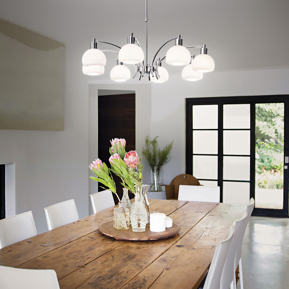 Арматура из хромированного металла регулируемая по высоте. Рассеиватель из облицованного дутого матового стекла.