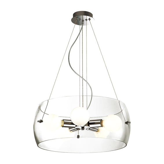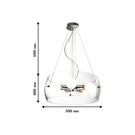 Арматура изготовлена из хромированного металла, стеклянный прозрачный абажур.