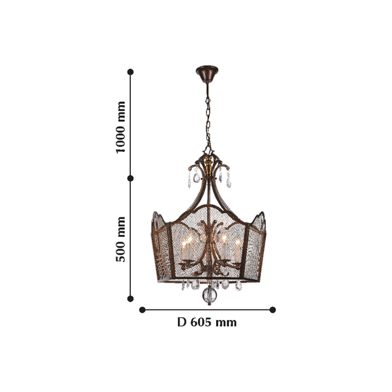 Арматура выполнена из металла, окрашенного в коричневый цвет с черными точками, декоративные элементы цвета старого золота, хрусталь высшего качества.