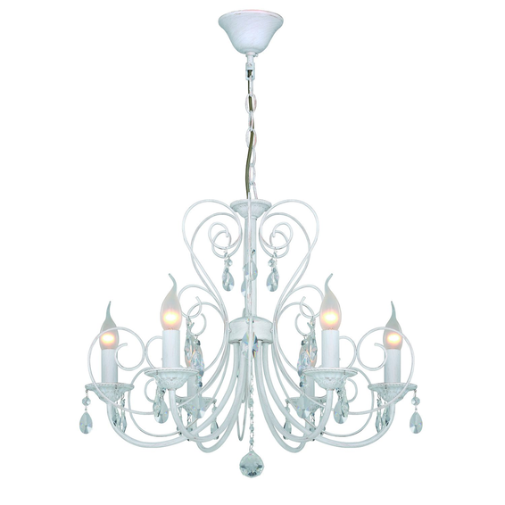 Каркас светильника из металла белого цвета с золотой патиной,в сочетаний с хрустальными подвесками высшего качества.Доступен в коричневом цвете код- 2158-6P .