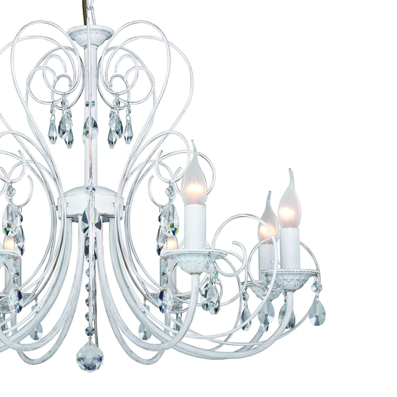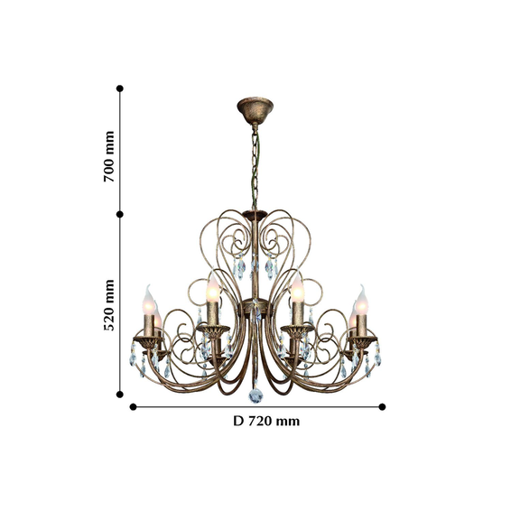 Каркас светильника из металла белого цвета с золотой патиной,в сочетаний с хрустальными подвесками высшего качества.Доступен в коричневом цвете код- 2158-8P .