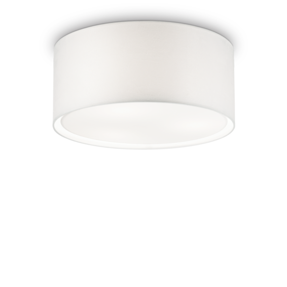 Круглая арматура из окрашенного металла. Абажур из материала ПВХ покрытого тканью.