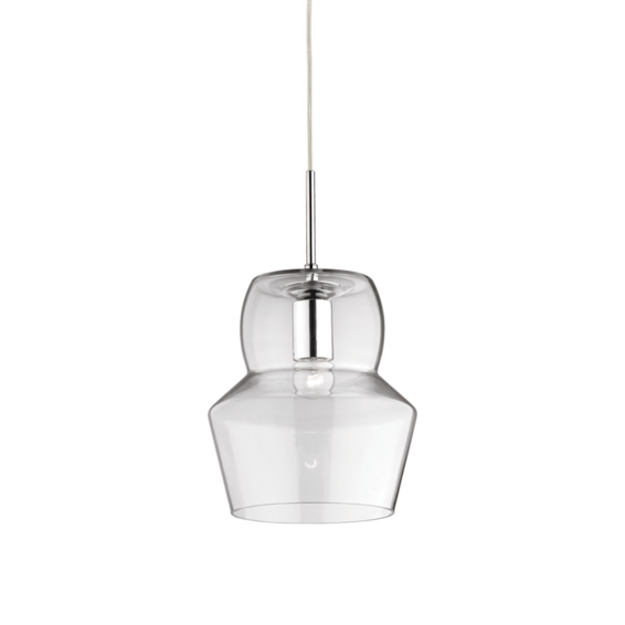 Арматура из хромированного металла. Рассеиватель из дутого прозрачного или цветного стекла. Электрический провод регулируемый по длине.