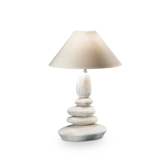 Корпус светильника из окрашенной керамики. Металлические детали никелевого матового цвета. Абажур из материала ПВХ, обтянут льняной тканью бежевого цвета.
