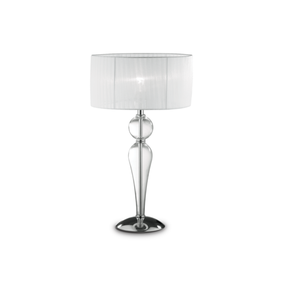 Основа и элементы из металла с хромовым покрытием. Декоративные элементы из дутого стекла ручной работы. Абажур из плиссированной органзы.
