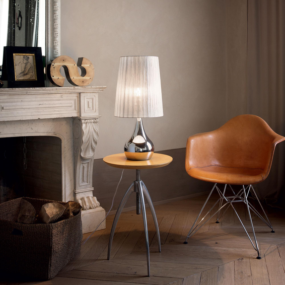 Oснова изготовлена из литого металла. На хромовую основу установлен абажур со складками из органзы с металлическими оттенками.